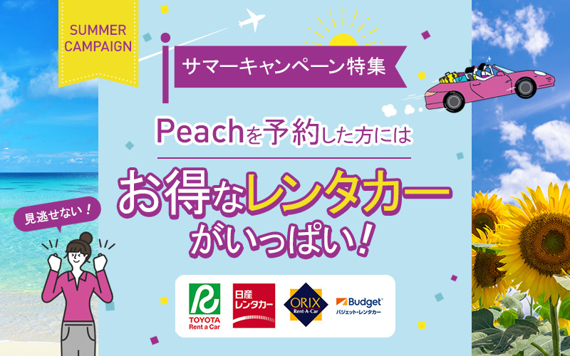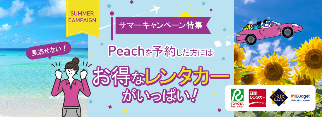 ※Peachご利用者様対象の割引については、空港、クラス、営業所等によって適用されない場合もございます。
